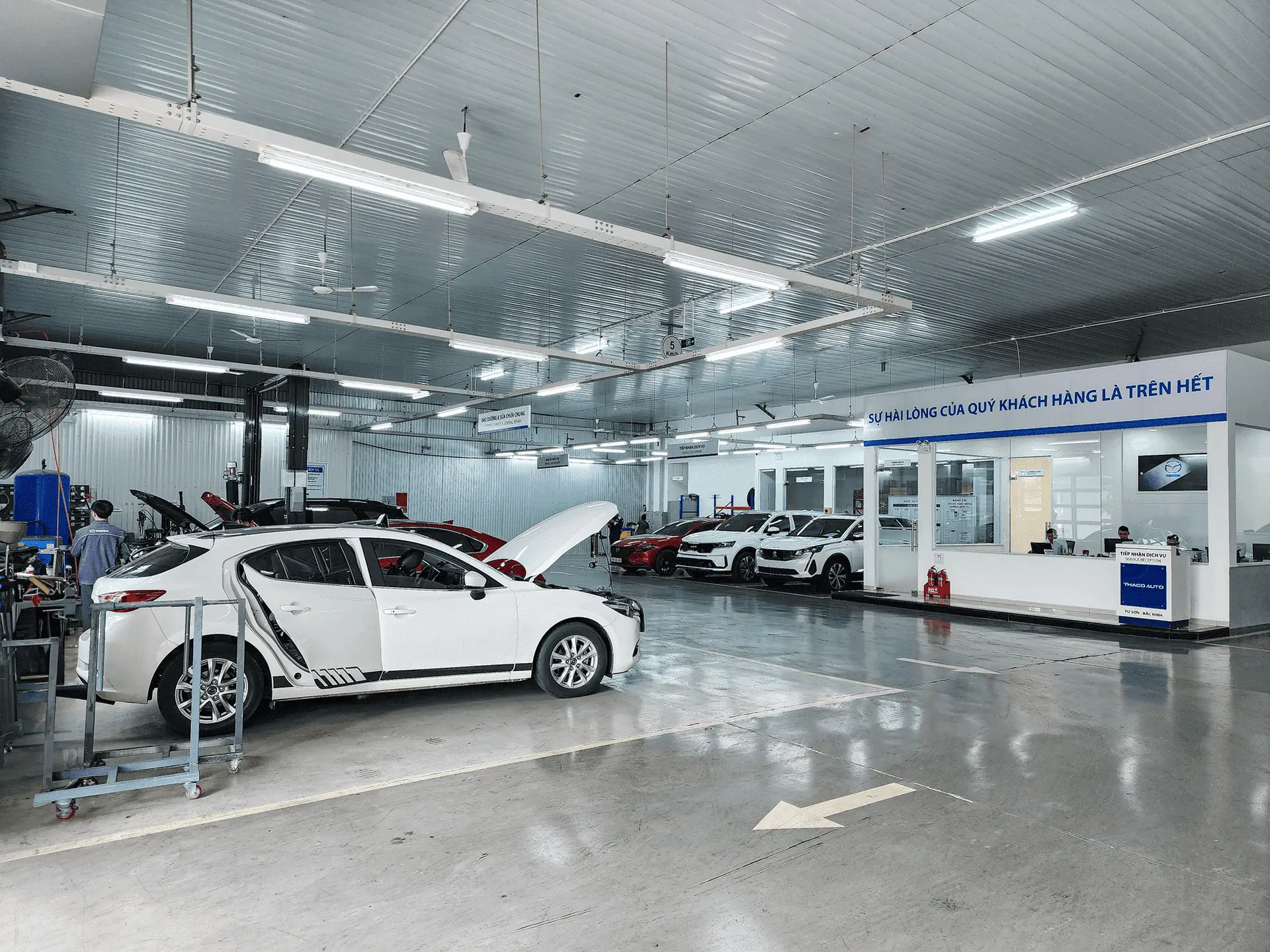 Với hệ thống khoang sửa chữa trung bình từ 10-15 khoang tùy thương hiệu, được đầu tư trang thiết bị hiện đại, sử dụng máy chẩn đoán lỗi kỹ thuật công nghệ tiên tiến, Xưởng Dịch vụ THACO AUTO Bắc Ninh đáp ứng mọi nhu cầu sửa chữa của khách hàng với dịch vụ nhanh nhất và chất lượng tốt nhất.